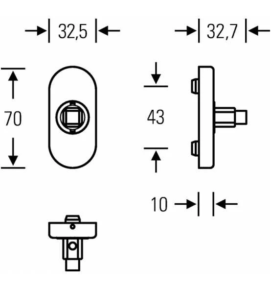 ASL®-Fenstergriffadapter · mit Rastung · gem. DIN EN 13 126-3 · ovale Standard-Rosette · passend für alle ASL®-Drückerlochteilen Weitere technische Eigenschaften: · Nocken-Ø: 10mm · Lochabstand: 43mm · Sockelstärke: 10mm · Anschlagrichtung: DIN links / rechts · Vierkant: 7mm