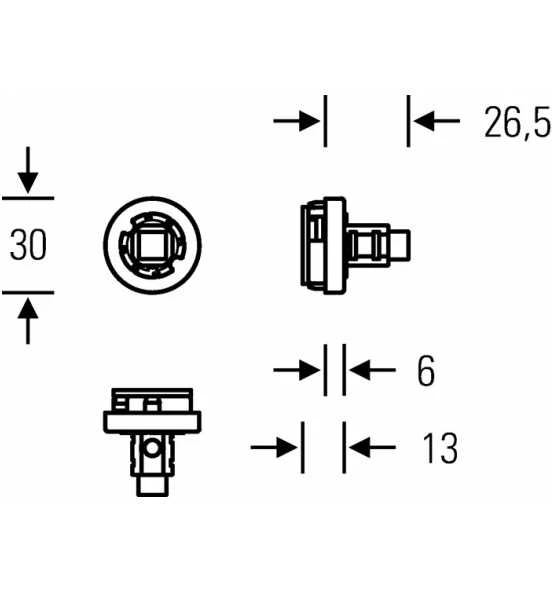 ASL®-Fenstergriffadapter Steckgriff für Metallprofile · mit Rastung · gem. DIN EN 13 126-3 · runde Rosette Ø 30mm · passend für alle ASL®-Drückerlochteilen Weitere technische Eigenschaften: · Lochabstand: 43mm · Sockelstärke: 6mm · Anschlagrichtung: DIN links / rechts · Vierkant: 7mm