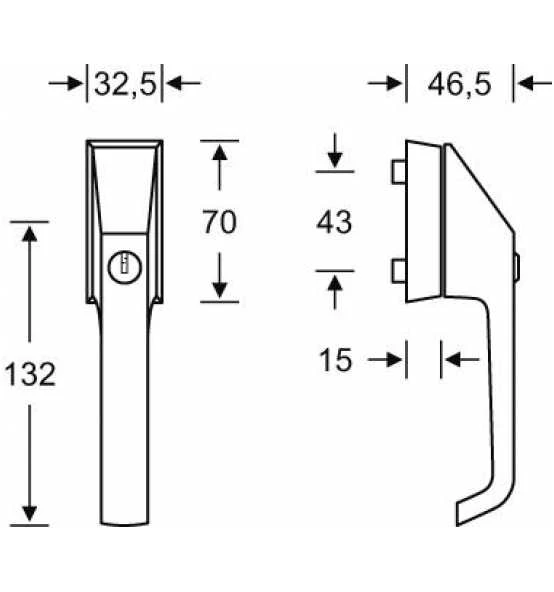 Abschließbarer Fenstergriff nach DIN EN 13126-3 , auf Rosette, 70,0 x 32,5 mm, für einbruchhemmende Fenster nach DIN V ENV 1627 gleichschließend, RAL-geprüfte Kugelrastung, dauerhafte Gleichlauf, spürbare Positionierung, ganzflächig abdeckende, eckige Rosette 15 mm hoch, mit stabilisierenden Stütznocken, Ø 10 mm,