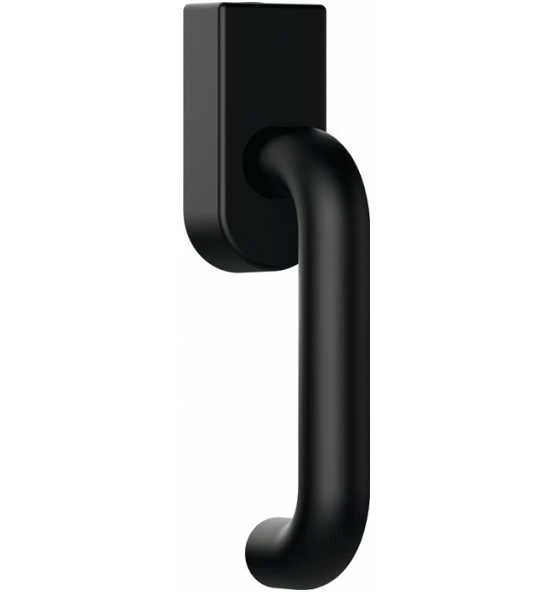 aus mattem Polyamid · Durchmesser 20 mm · 130 mm lang · 7 mm Vierkantstift · der Fenstergriff erfüllt die Vorgaben der DIN 18040 · Rosette mit Metallunterteil, 76,5 x 35 mm · mit Stützzapfen · integrierter Druckzylinder mit 5 Stiftzuhaltungen · Prüfung gemäß RAL-RG 607/9 · im Auftragsfall bitte die genaue Stiftlänge angeben Weitere technische Eigenschaften: · Grifflänge: 130mm · Nocken-Ø: 10mm · Lochabstand: 43mm · Sockelstärke: 23mm · Anschlagrichtung: DIN links / rechts · Vierkant: 7mm · Prüfung: DIN EN 13126 Teil 3 DIN EN 1627 – 1630 RC1 – RC6