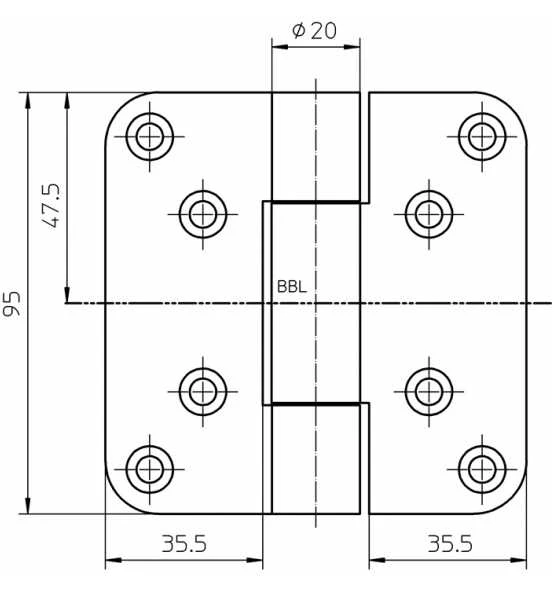 für ungefälzte Türen an Blockzargen · Belastungswert 160 kg · innenliegender, verdrehsicherer Schraubstift · verdeckt liegende, wartungsfreie Axial-Radial-Gleitlager · Rollenlänge 95 mm · Rollen-Ø 20 mm · DIN links / rechts verwendbar Weitere technische Eigenschaften: · Materialstärke: 3,5mm