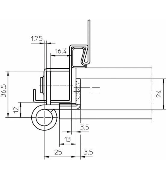 für gefälzte Türen an Stahlzargen mit Aufnahmeelement V 8600 / V 8610 · innenliegender, verdrehsicherer Schraubstift · verdeckt liegende, wartungsfreie Axial-Radial-Gleitlager · Rollenlänge 95 mm · Rollen-Ø 20 mm · Belastungswert 100 kg · VN 8939/100 · DIN links oder rechts verwendbar Weitere technische Eigenschaften: · Materialstärke: 3,5mm